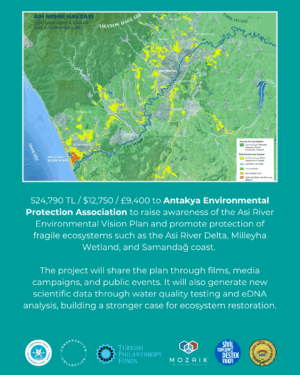 Building on its earlier work, the association will strengthen awareness and advocacy for protecting the Asi River Delta, Milleyha Wetland, and Samandağ Coast. The project integrates scientific monitoring (including eDNA biodiversity assessments), social media campaigns, and policy advocacy to align with the global “30×30” goal.