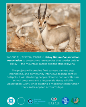 Hatay Nature Conservation Association Hatay’s Unique Wildlife: Conservation of Mountain Gazelles and Striped Hyenas – 546,000 TRY