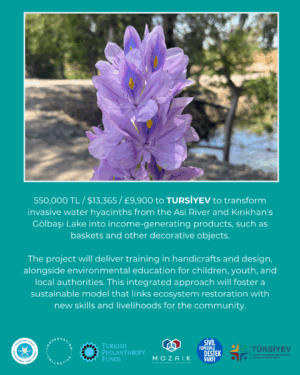 TURSIYEV (Türkiye Sustainable Humanitarian Aid and Education Foundation) Asi River & Gölbaşı Lake Rehabilitation via Water Hyacinth Upcycling – 550,000 TRY